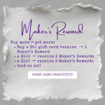 Starting on Black Friday, Nov 28th, but only until Dec 14th! When you buy a $50 gift card, you'll receive a $10 Maker's Reward card as our little thank-you. Buy More? Get More!